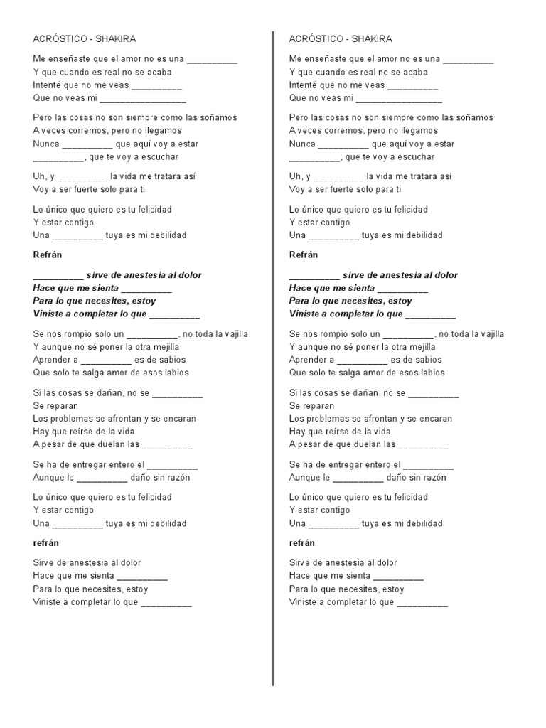ACRÓSTICO - SHAKIRA ACRÓSTICO - SHAKIRA