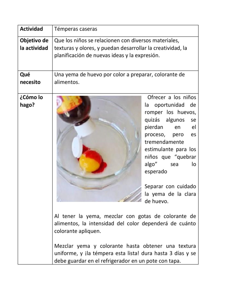 Actividad Témperas caseras