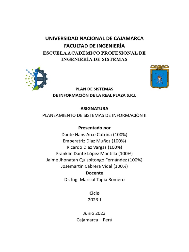 DE INFORMACIÓN DE LA REAL PLAZA S.R.L