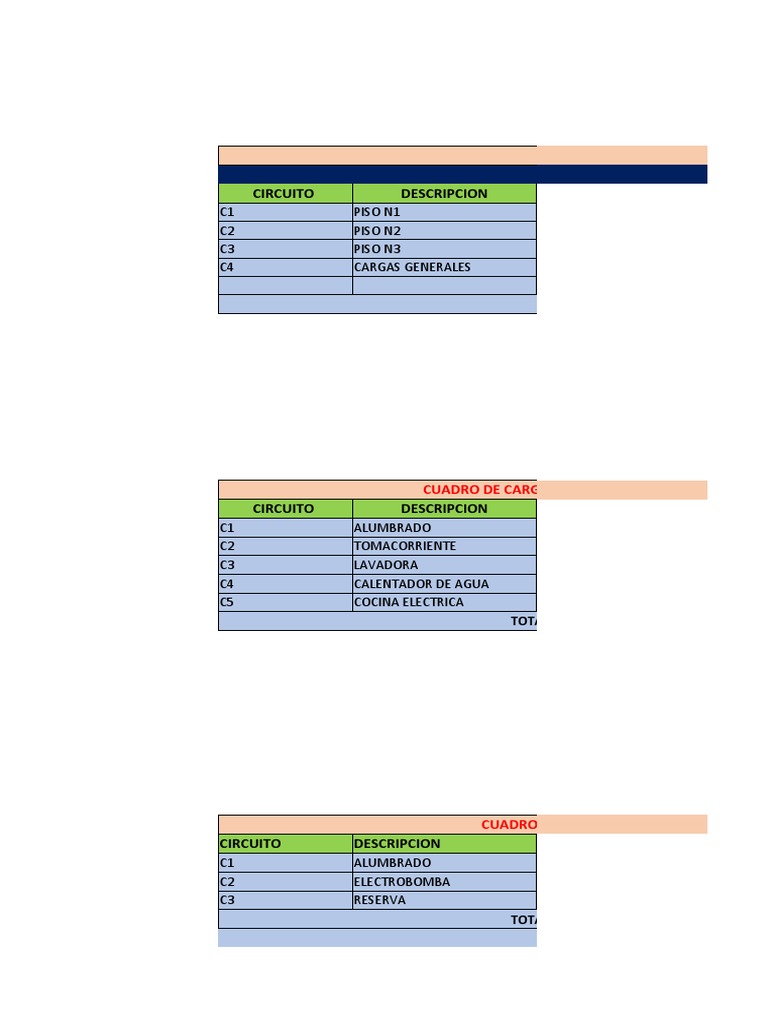 CUADRO DE CARGAS DE TABLERO ELECTRICOS PARA AREAS COMUNES TSG