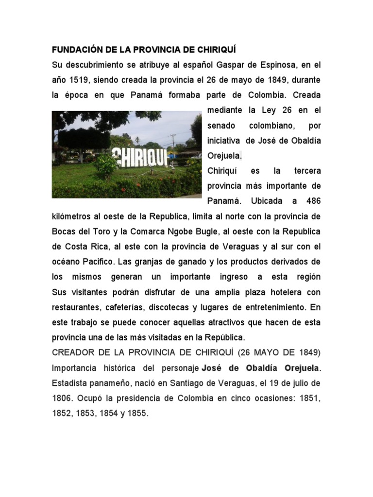 FUNDACIÓN DE LA PROVINCIA DE CHIRIQUÍ