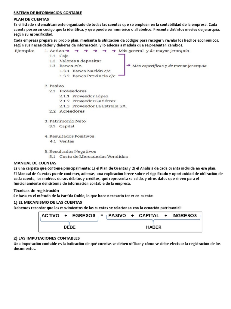 cuenta posee un código que la identifica, y que puede ser numérico o alfabético. Presenta distintos niveles de jerarquía,