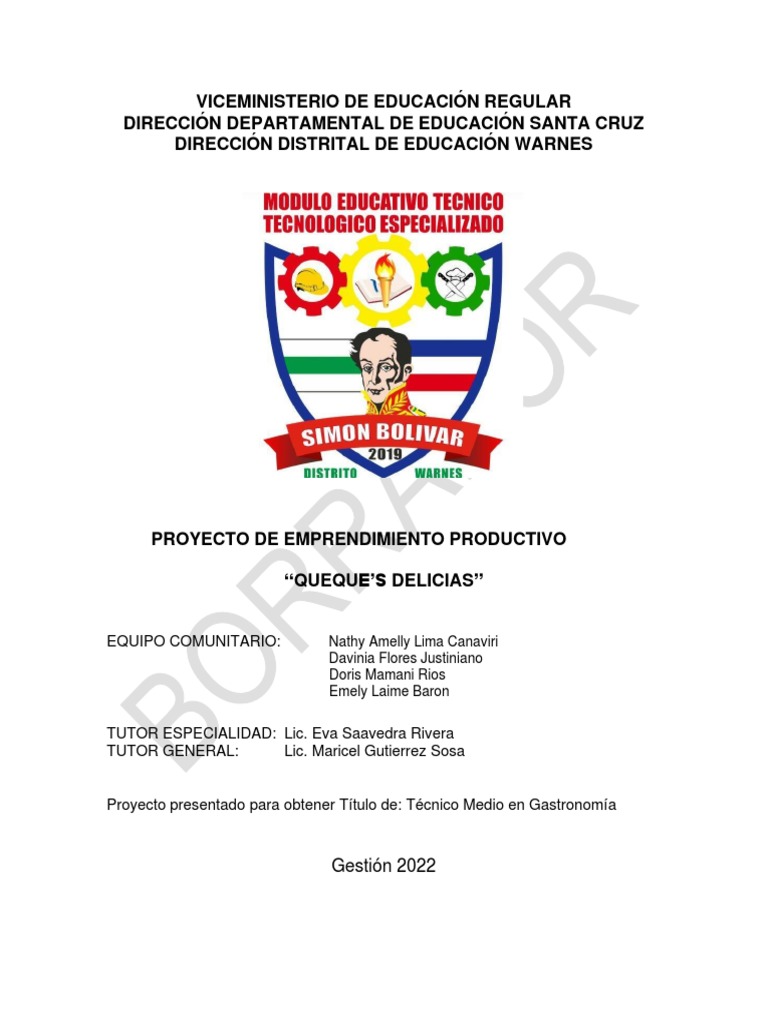PROYECTO DE EMPRENDIMIENTO PRODUCTIVO