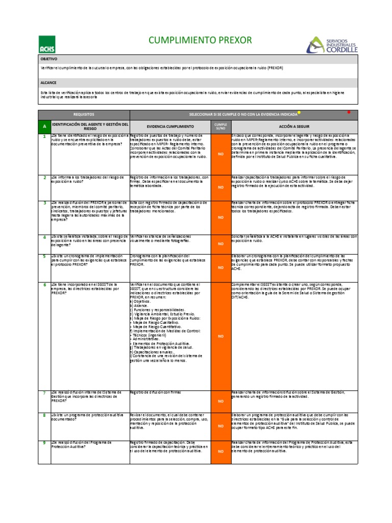 el protocolo PREXOR? PREXOR. de cumplimiento para cada punto. Se puede utilizar formato propuesto