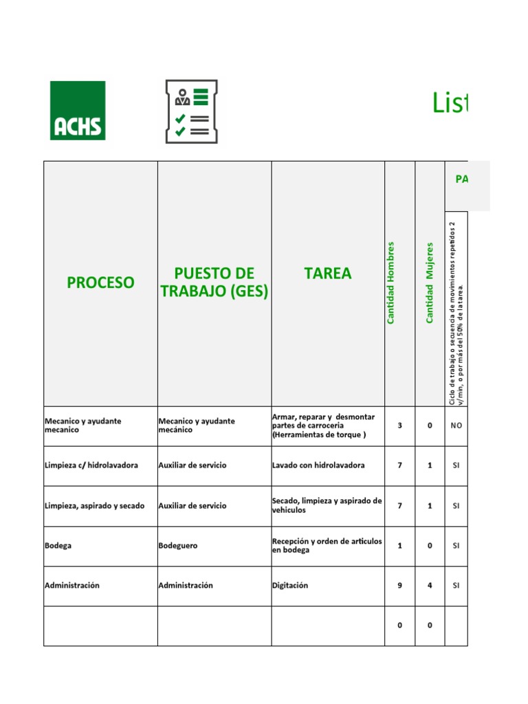 » Factores de riesgo según tareas y sus efectos en la salud.