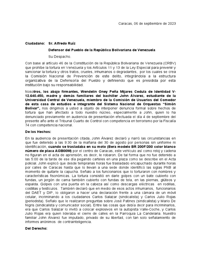 Bolívar”, nos dirigimos a usted a objeto de interponer denuncia formal sobre hechos de