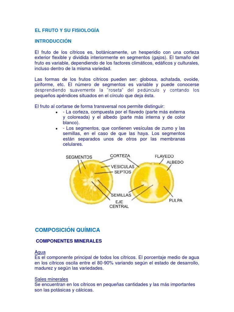 EL FRUTO Y SU FISIOLOGA INTRODUCCIN El fruto de los ctricos es, botnicamente, un hesperidio con una corteza exterior flexible y dividida