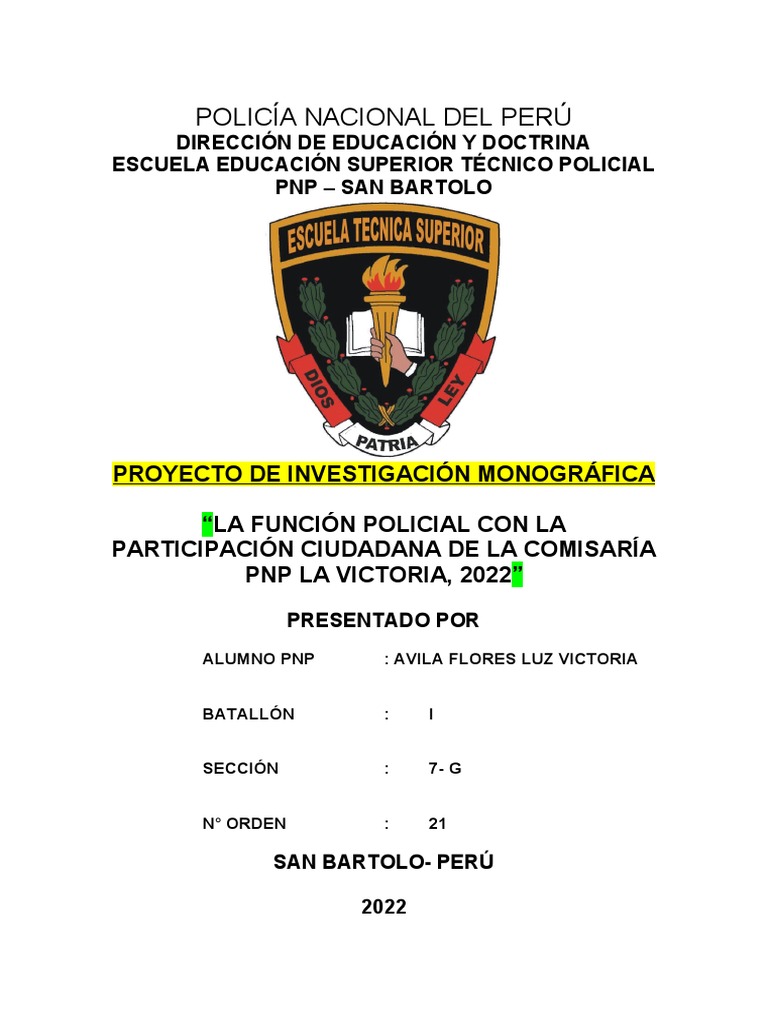 La investigación monográfica será desarrollada por la Alumna PNP