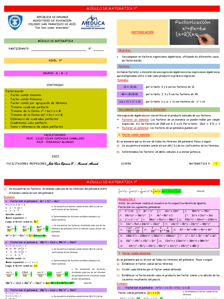 Factorización en Matemática 9°