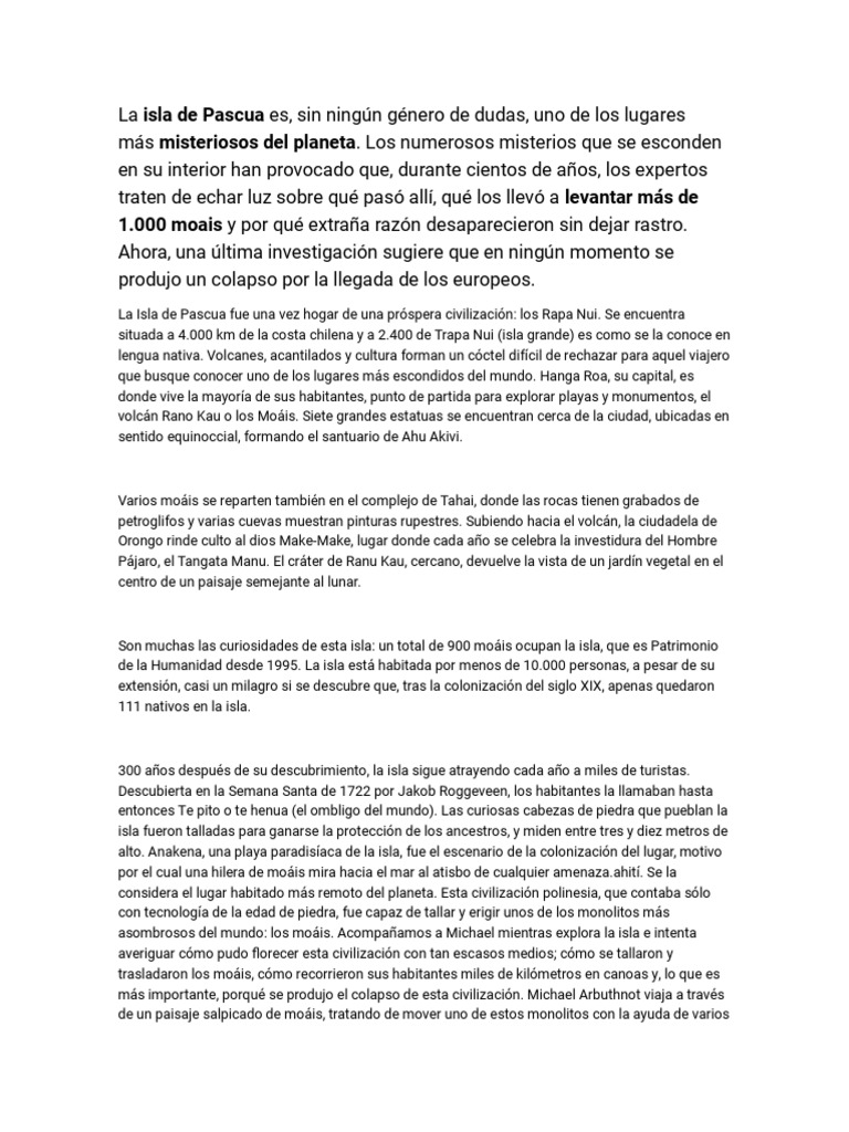 trasladaron los moáis, cómo recorrieron sus habitantes miles de kilómetros en canoas y, lo que es