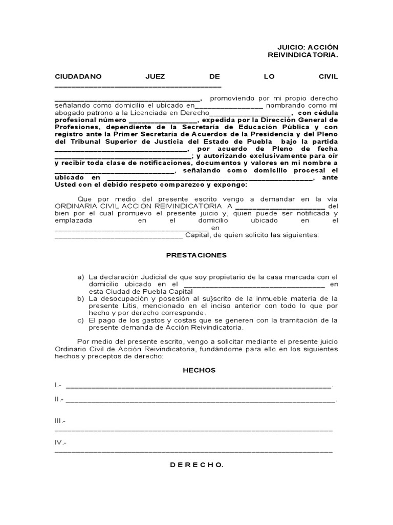 ORDINARIA CIVIL ACCION REIVINDICATORIA A _____________________ del