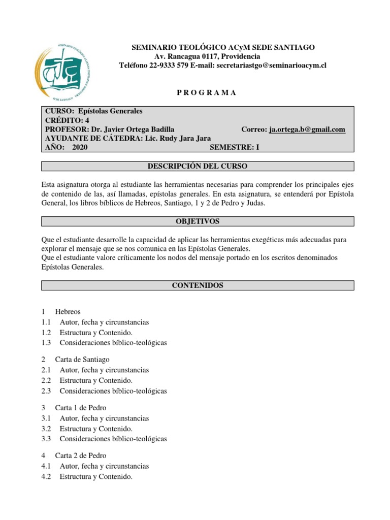 de contenido de las, así llamadas, epístolas generales. En esta asignatura, se entenderá por Epístola