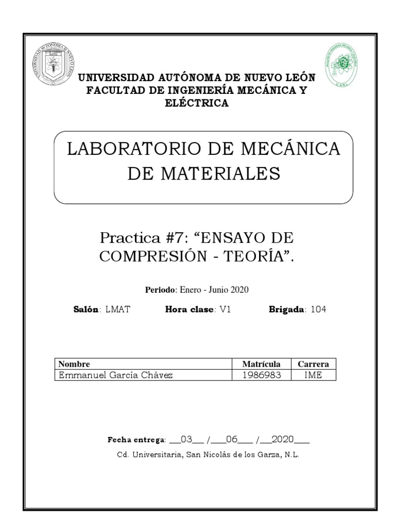 la máquina universal y aplicando carga que comprima la pieza. Los datos obtenidos