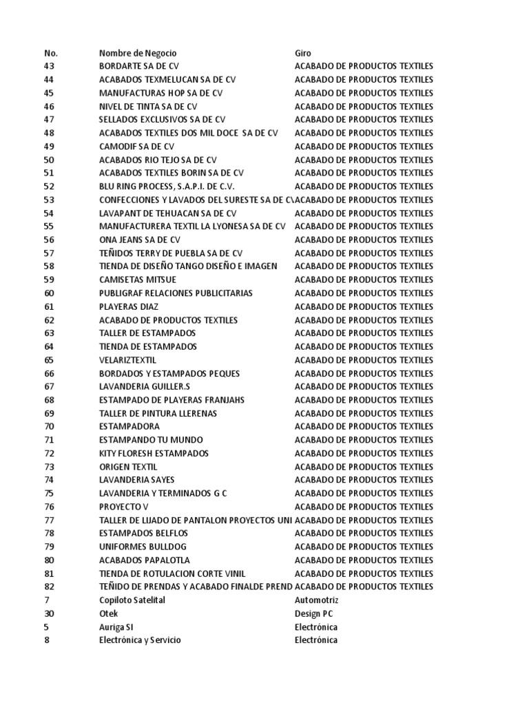 No. Nombre de Negocio Giro Telefono Email Origen G-Bussines