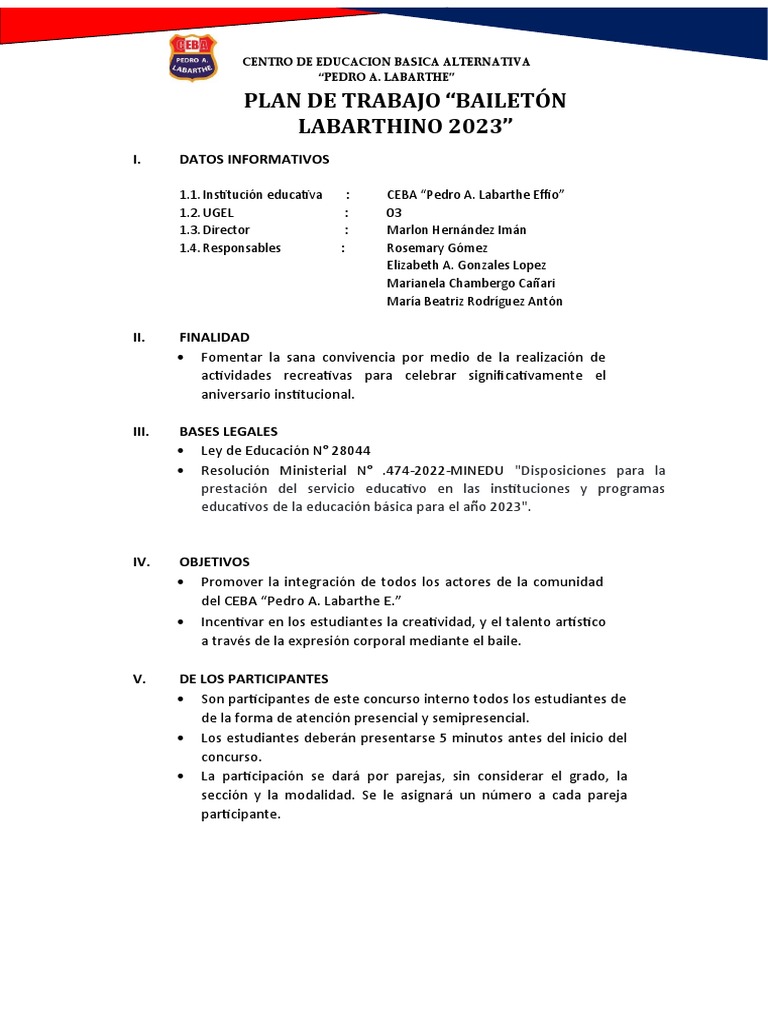 1.1. Institución educativa : CEBA “Pedro A. Labarthe Effio”