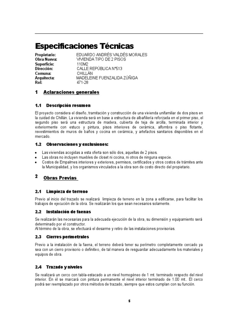 la cuidad de Chillán. La vivienda será en base a estructura de albañilería reforzada en el primer piso, el