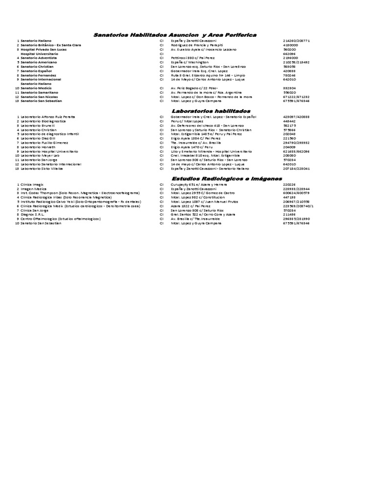 Sanatorios Habilitados Asuncion y Area Periferica