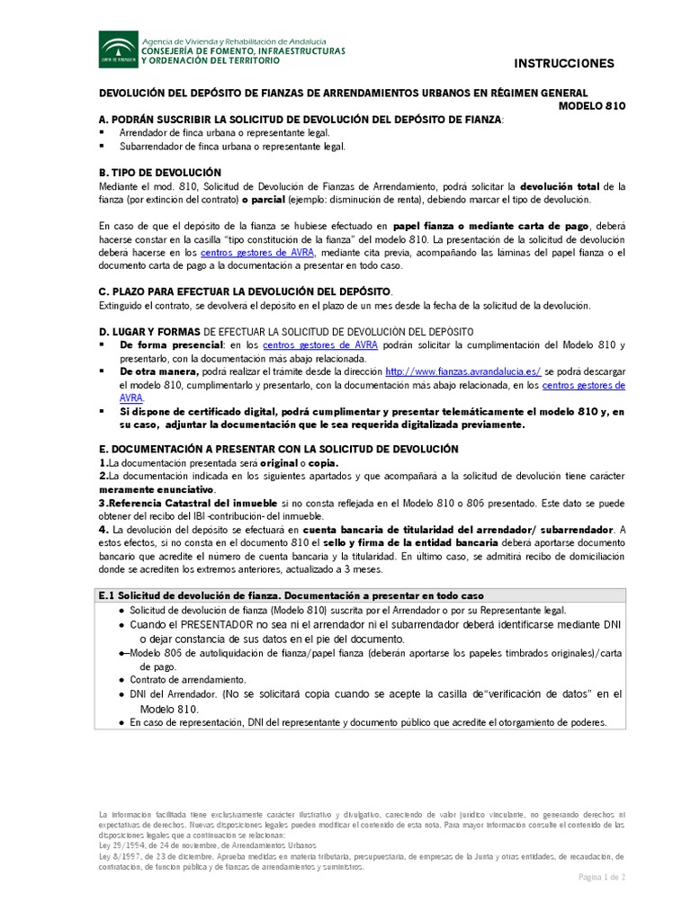 Mediante el mod. 810, Solicitud de Devolución de Fianzas de Arrendamiento, podrá solicitar la devolución total de la