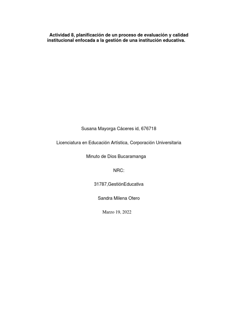Actividad 8, planificación de un proceso de evaluación y calidad