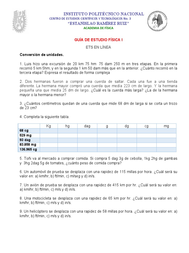 GUÍA DE ESTUDIO FÍSICA I