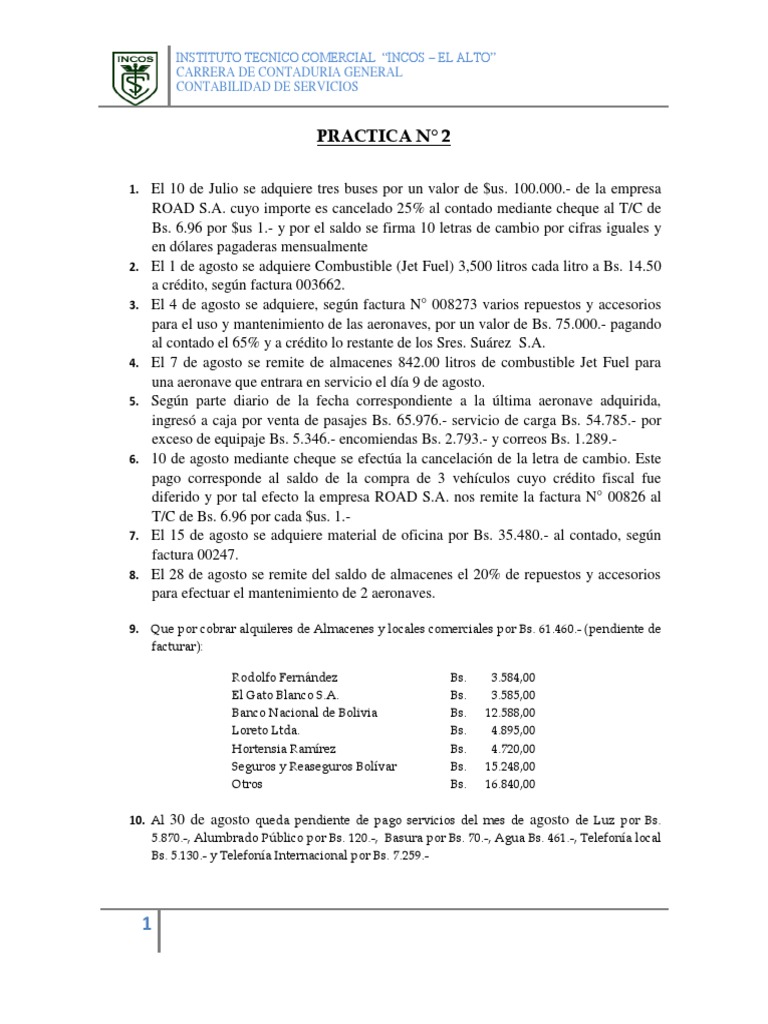 1. El 10 de Julio se adquiere tres buses por un valor de $us. 100.000.- de la empresa