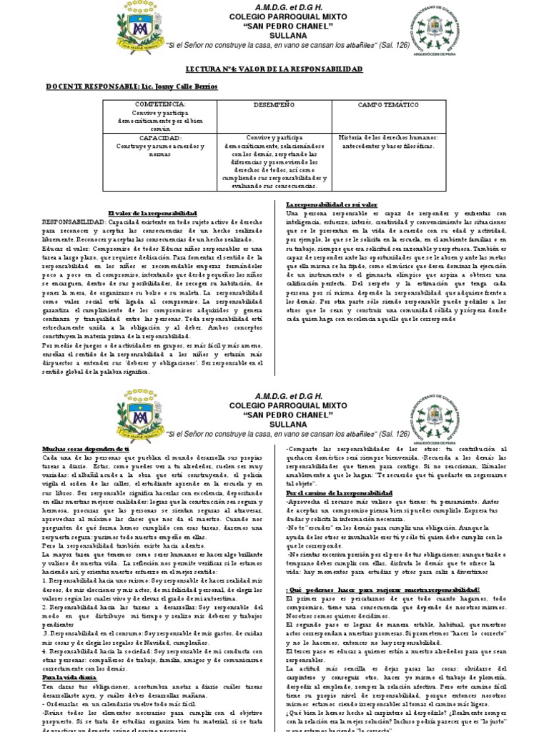 LECTURA N°4: VALOR DE LA RESPONSABILIDAD