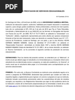 matrículas, suponen el Contrato de Prestación de Servicios educativos celebrado entre la UNIVERSIDAD y el(la)