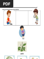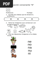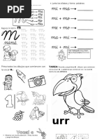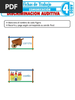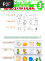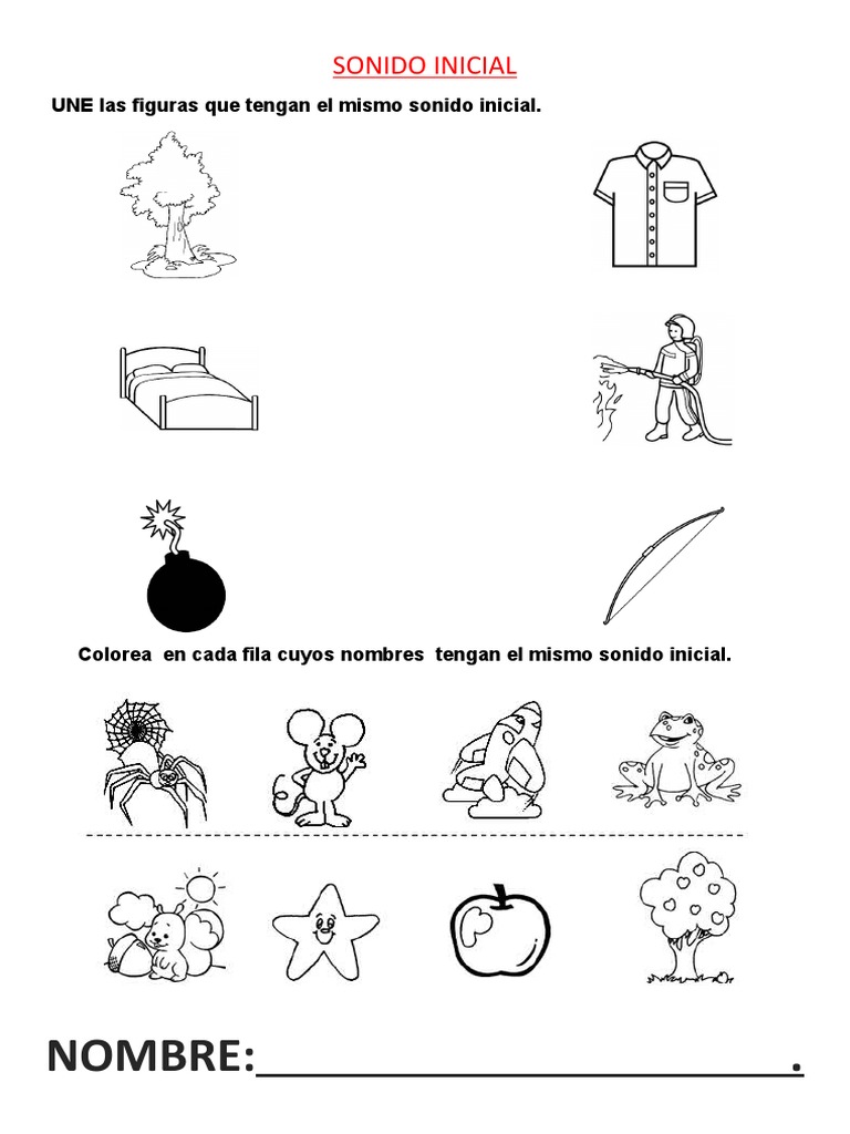 El documento instruye a unir figuras con el mismo sonido inicial y colorear filas de nombres con el mismo sonido inicial, como por ejemplo la ficha de Caperucita Roja.