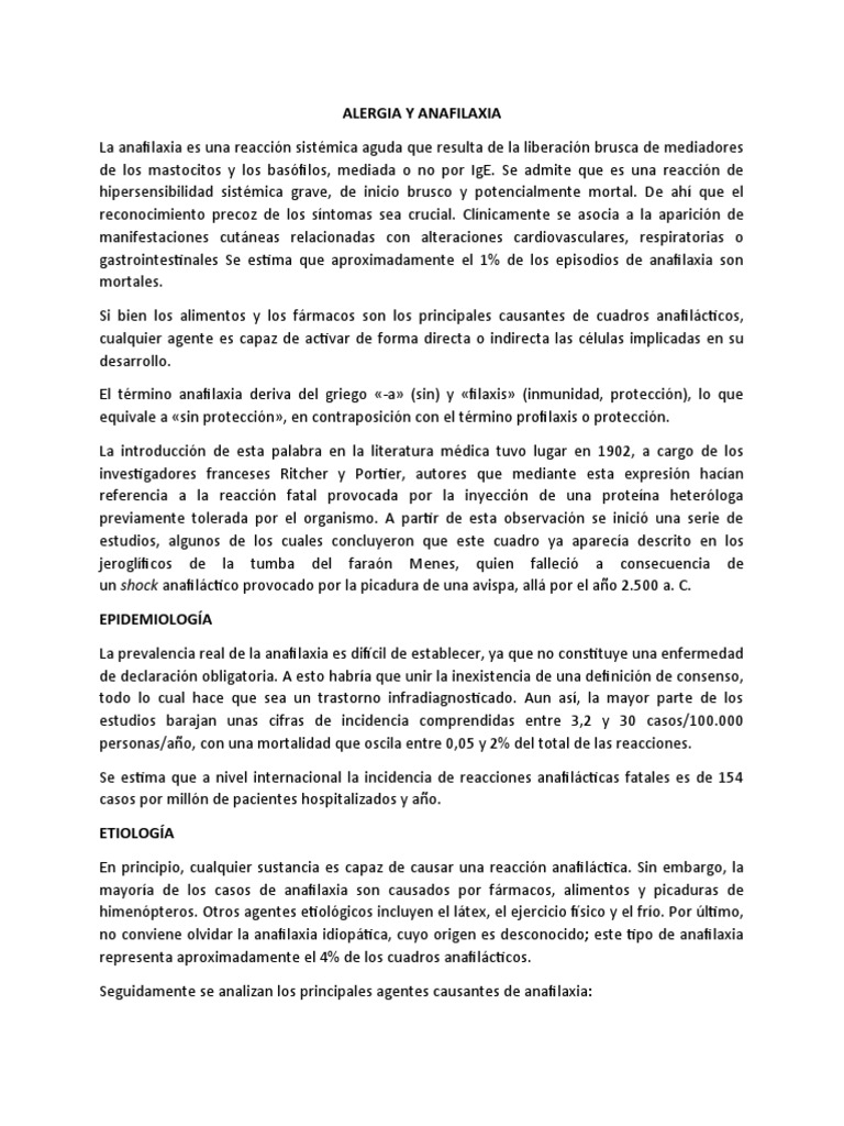 alimentos; la mayor prevalencia de anafilaxia se observa en menores de 6 años, sin embargo, la