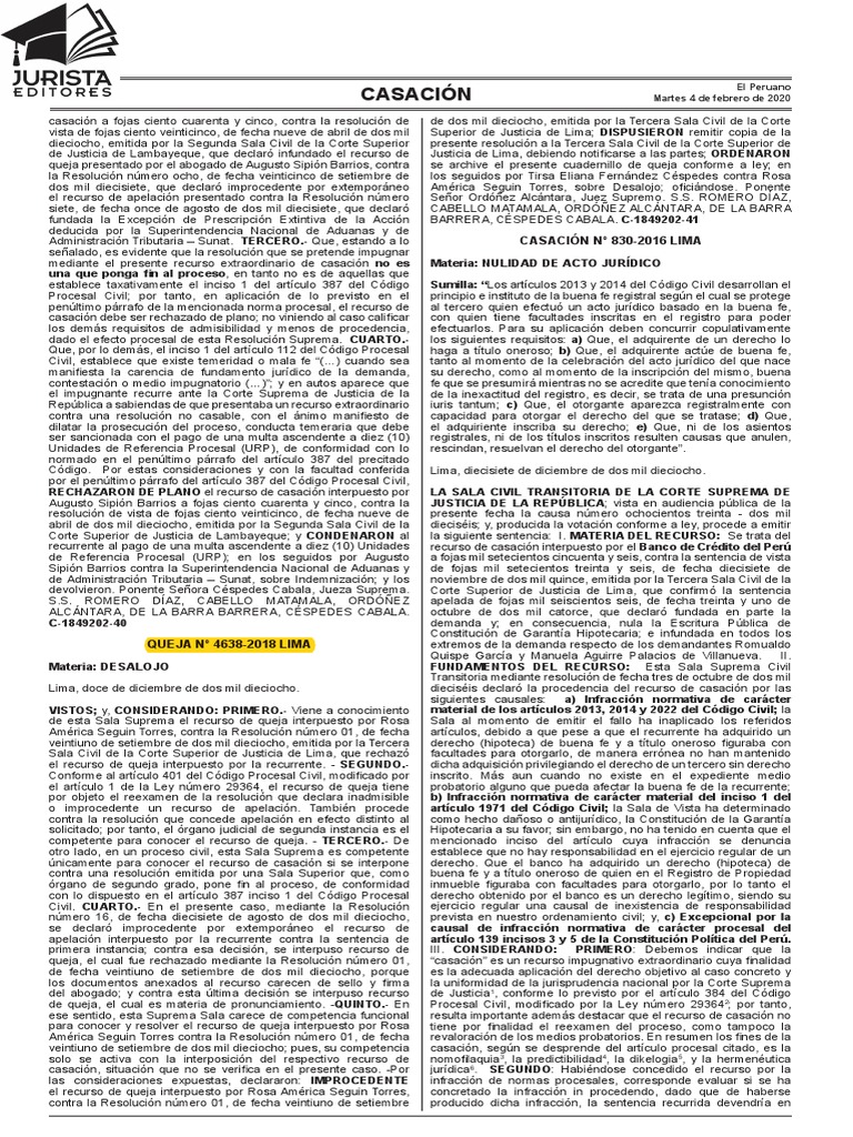por tanto, el juzgador para resolver la controversia debe constatar Civil. Tomo X. Lima: Gaceta Jurídica, 2007. p. 222.