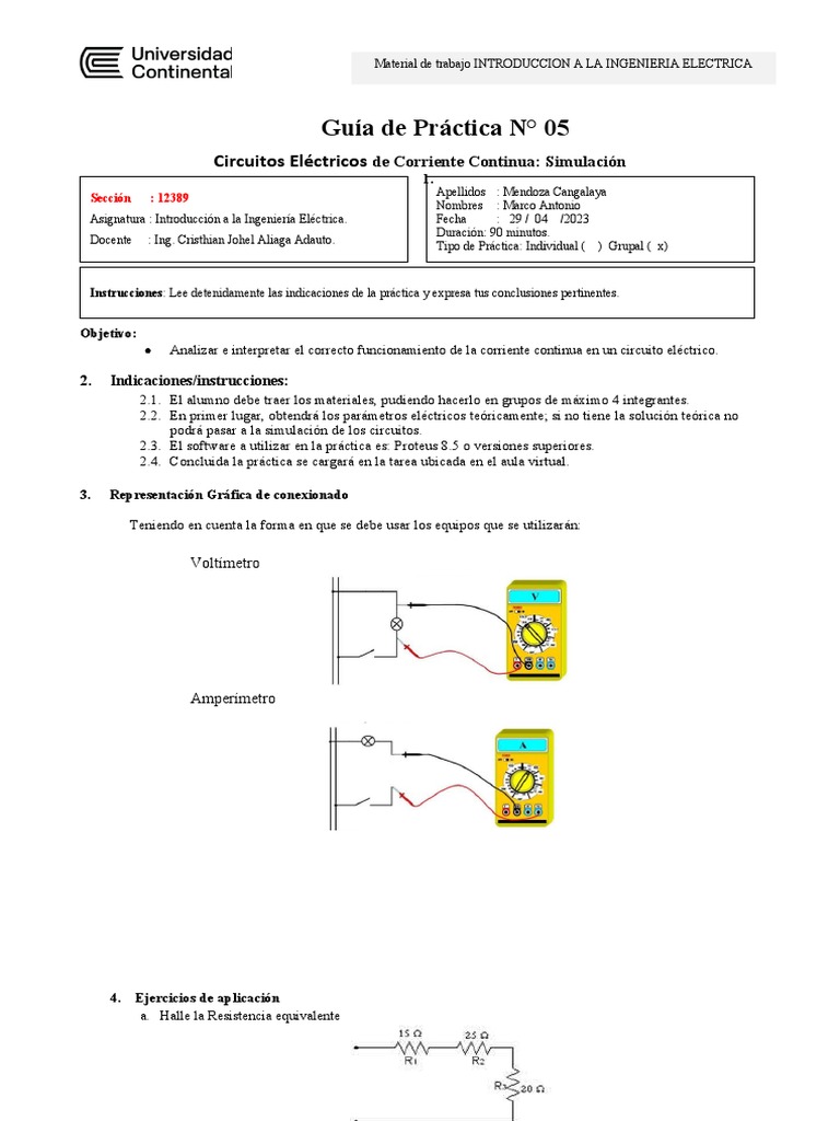 Asignatura : Introducción a la Ingeniería Eléctrica. Fecha : 29 / 04 /2023