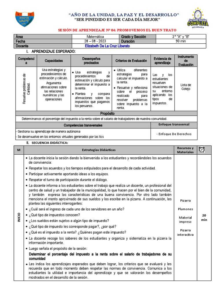 SESIÓN DE APRENDIZAJE N° 04: PROMOVEMOS EL BUEN TRATO