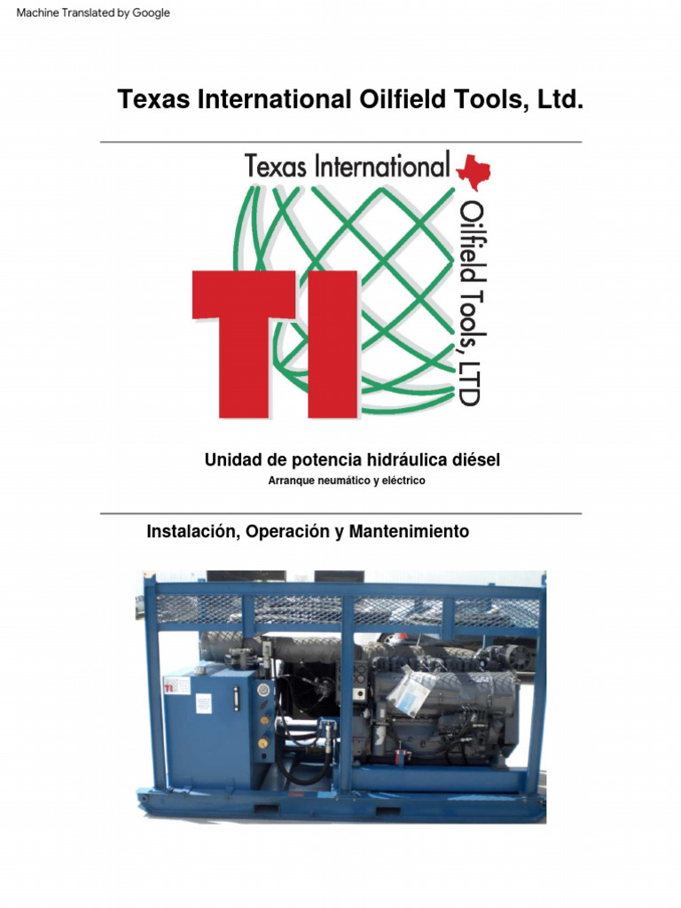 La unidad de energía hidráulica diesel requiere una ubicación donde se disponga de un flujo de aire