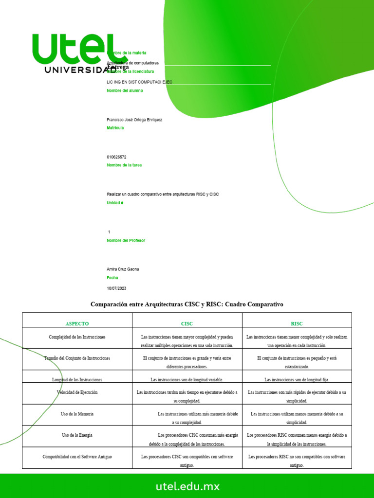 Comparación entre Arquitecturas CISC y RISC: Cuadro Comparativo