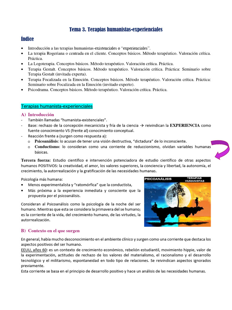 • Introducción a las terapias humanistas-existenciales o “experienciales”.