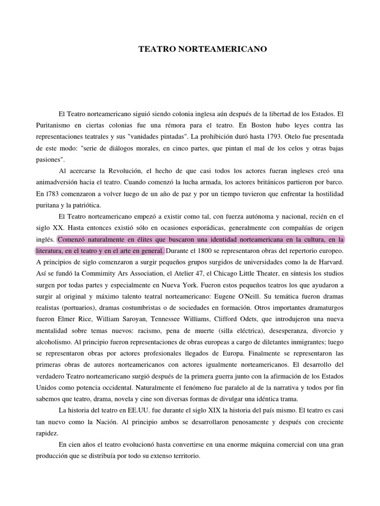 El Teatro norteamericano empezó a existir como tal, con fuerza autónoma y nacional, recién en el