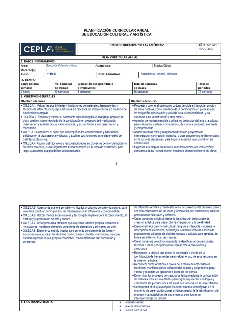 DE EDUCACIÓN CULTURAL Y ARTÍSTICA