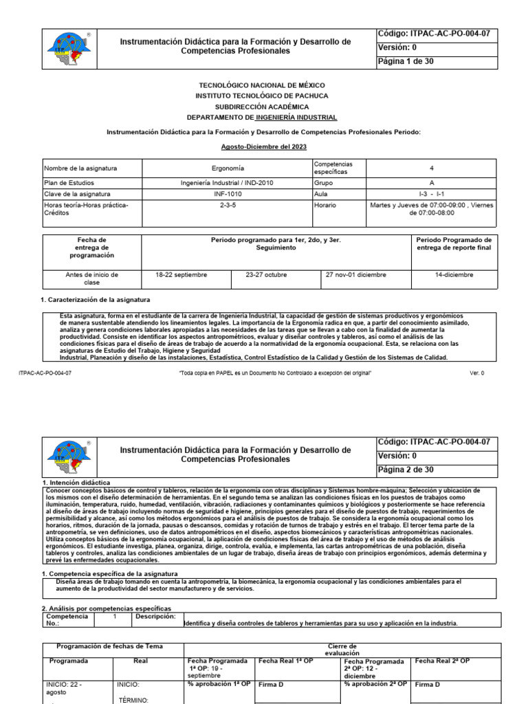 Instrumentación Didáctica para la Formación y Desarrollo de Código: ITPAC-AC-PO-004-07