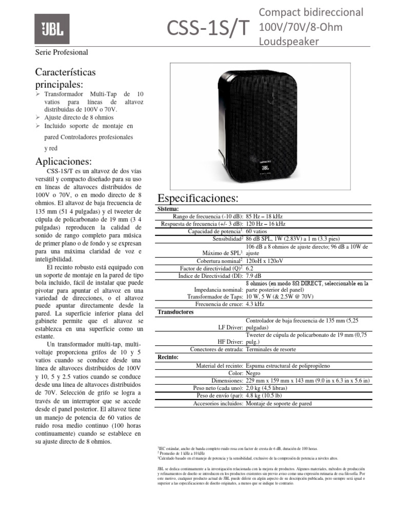 este motivo, cualquier producto actual de JBL puede diferir en algún aspecto de su descripción publicada, pero siempre será igual o