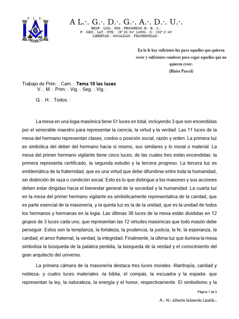 Trabajo de Prim.·. Cam.·. Tema 10 las luces