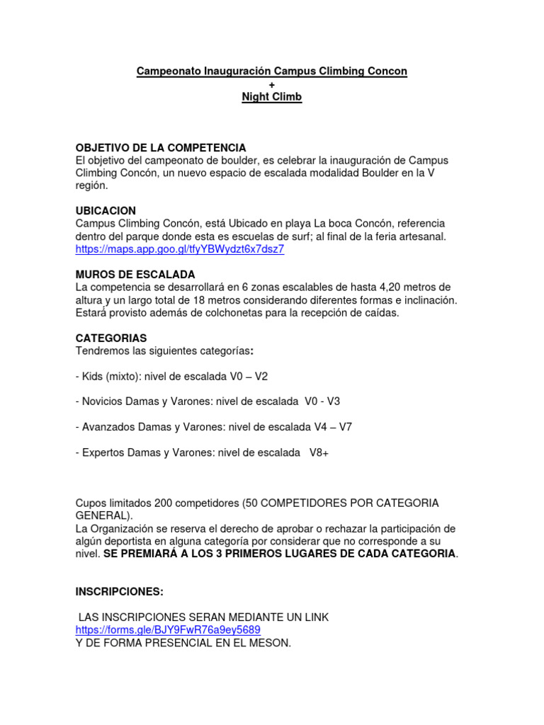 CRONOGRAMA INAUGURACIÓN CAMPUS CLIMBING CON-CON