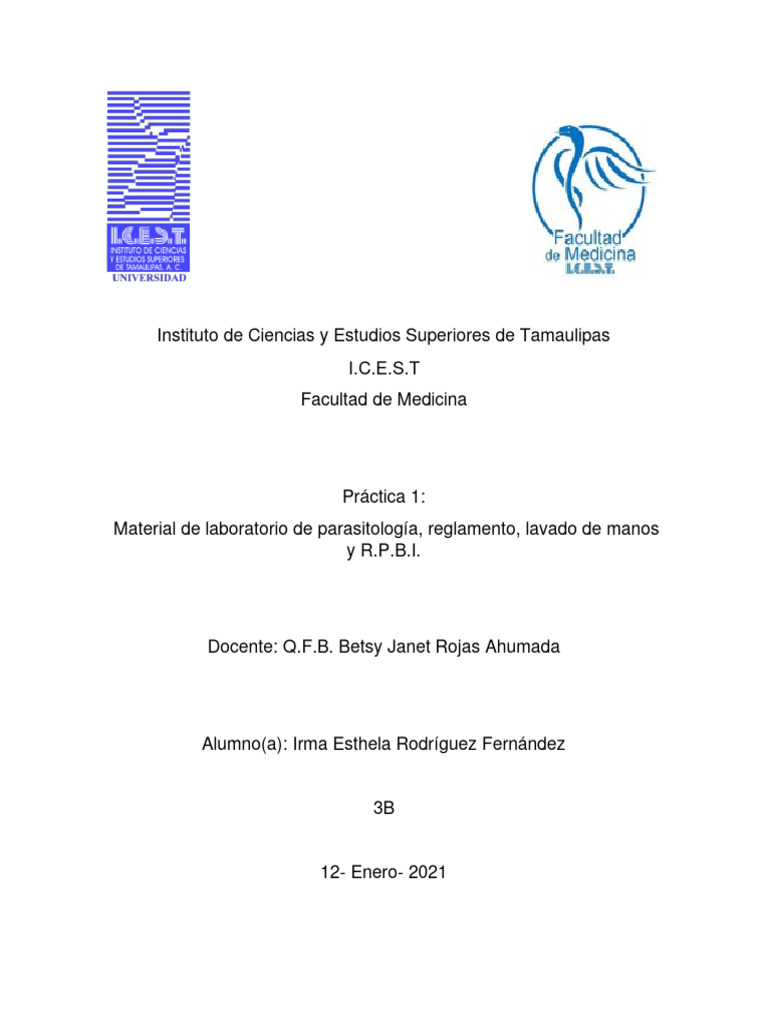 Material de laboratorio de parasitología, reglamento, lavado de manos