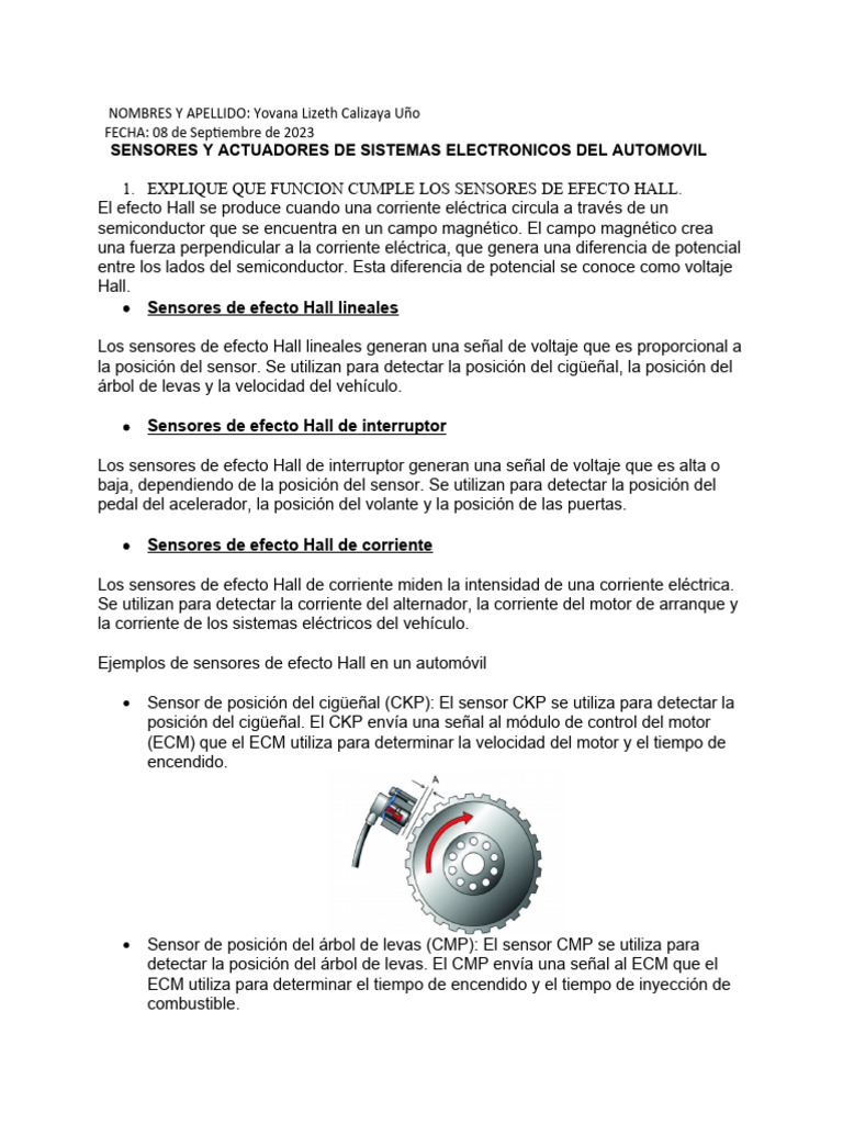 1. EXPLIQUE QUE FUNCION CUMPLE LOS SENSORES DE EFECTO HALL.