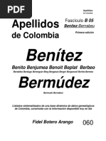 Este documento presenta una extensa bibliografía de libros y artículos sobre genealogías colombianas que sirvieron como base de datos para la construcción de una enciclopedia de apellidos de Colombia. La bibliografía incluye más de 100 fuentes como libros, boletines, monografías y artículos que contienen información genealógica sobre familias y linajes colombianos.