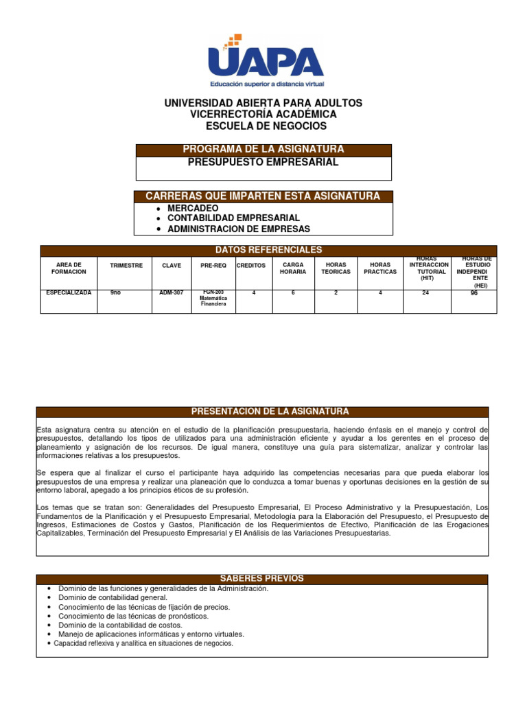 Esta asignatura centra su atención en el estudio de la planificación presupuestaria, haciendo énfasis en el manejo y control de