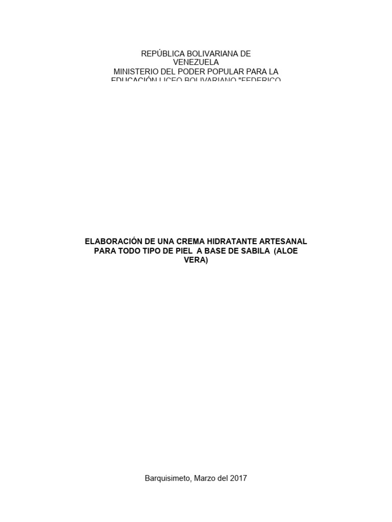 • Elaborar una crema hidratante artesanal, que tiene como base principal el