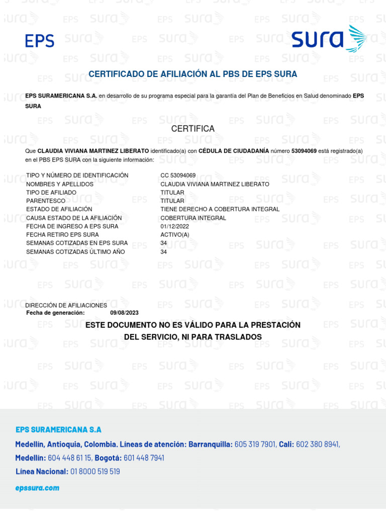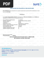 CERTIFICADO DE AFILIACIÓN AL PBS DE EPS SURA