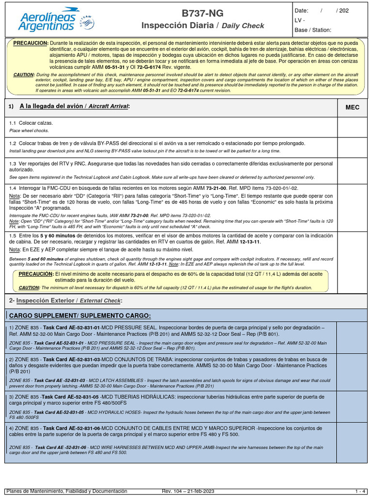Inspección Diaria / Daily Check MEC