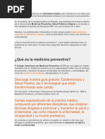 Es la disciplina dedicada al estudio de la La medicina preventiva es una especialidad