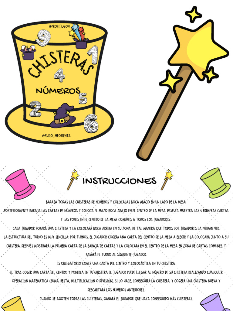 OPERACIÓN MATEMÁTICA (SUMA, RESTA, MULTIPLICACIÓN O DIVISIÓN). SI LO HACE, CONSEGUIRÁ LA CHISTERA, Y COGERÁ UNA CHISTERA NUEVA Y